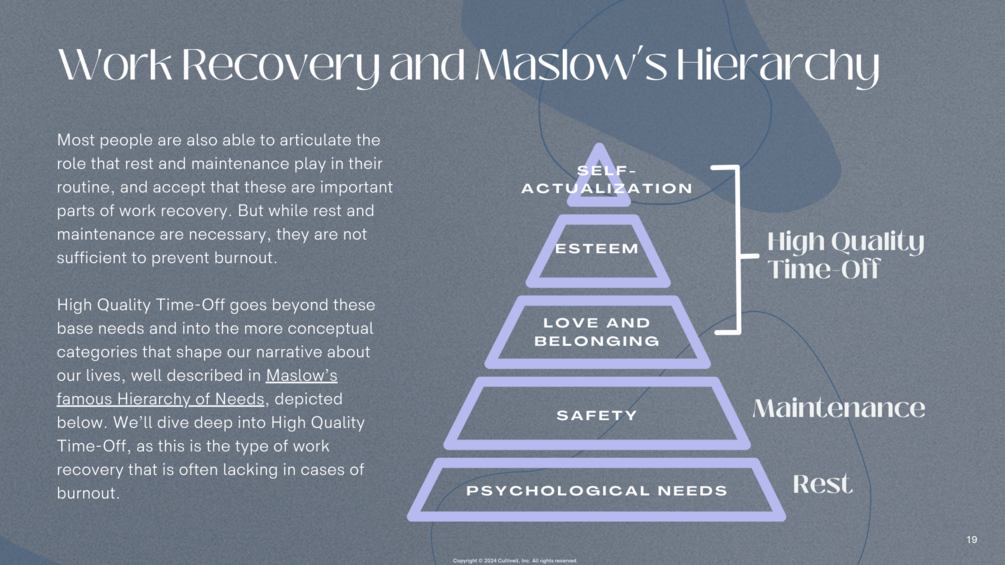 This workbook does not take a traditional approach to "work-life balance." Instead, we reveal new practical strategies to navigate stress and cultivate resilience based in the latest management science. Delve into the five key attributes of High Quality Time-Off essential for maintaining peak performance while sidestepping the pitfalls of unsustainable work habits.